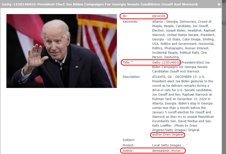 - Title: The label Getty and the Getty ID are appended to the assets Title for reference.