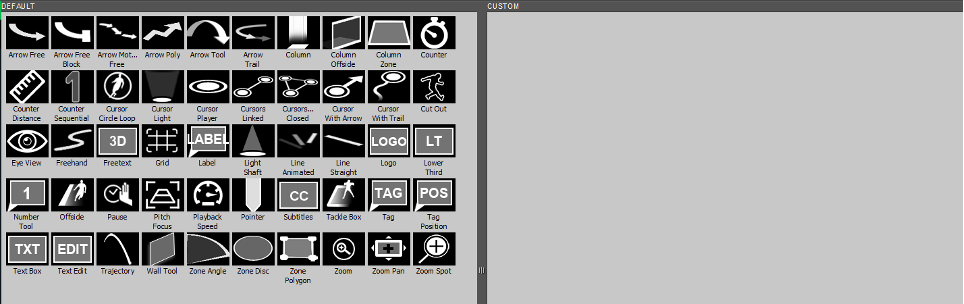 - Custom tab contains customized tools. Drag and drop tools here to save them.