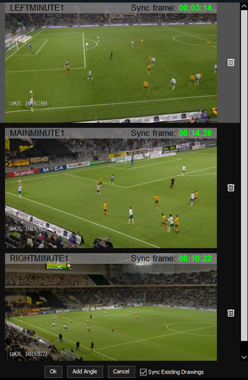 Clicking on the clips will select it for the purpose of editing the sync frame. To change it first seek to the desired frame and confirm by clicking the button in the preview. Both timer and screenshot will update.