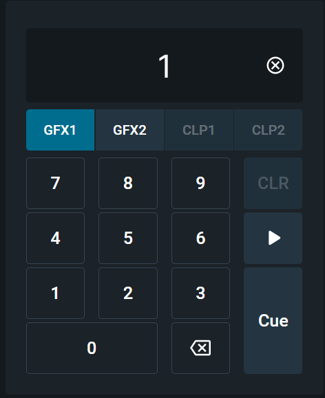 In fast moving productions, such as a high velocity sporting event, you may want to recall and play graphics quickly. You can use the number keypad, within the interface, to recall graphics by their number in the playlist.