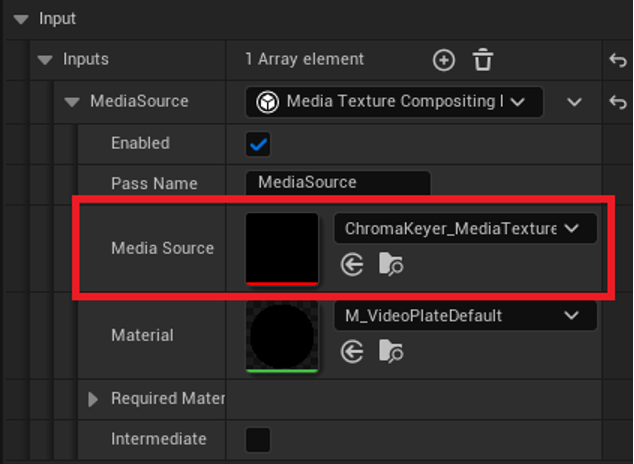 Select a Media Texture as the input (it is already set if the option to create a Media Texture was checked previously).