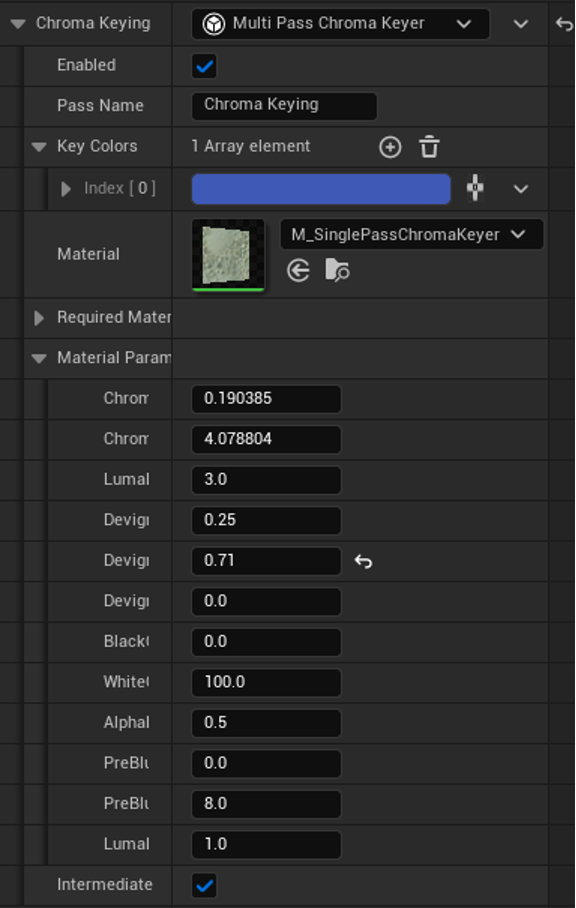 Select the Actor and choose a “Target”, i.e. the Object the plane should “look at” typically the Cesium Camera and choose the Texture from the Chroma Key as the “Input Texture”