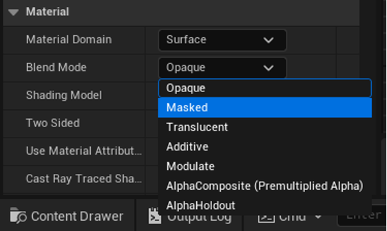 - In the advanced section of the material section, enable “Cast Dynamic shadow as Masked”