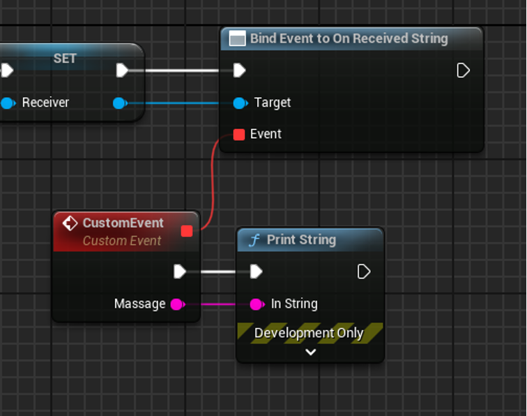 - OnTcpReceivedStringWithConnection - invoked on all accepted connections when received message, decodes incoming data to string with specified encoding from ReceiveFormat, has second parameter of type TCP Connection, to allow user specifying custom two way communication