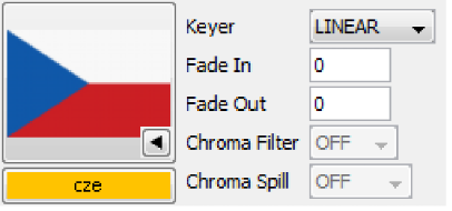 | Chroma spill | Used to prevent spilling of the background color on the edges of the keyed graphics. There are choices to prevent spill for the most used keying background colors. |