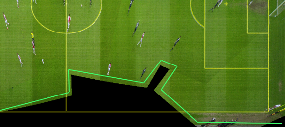 This step is for the camera tracker to let it know where to look for pitch lines. Define the border on the edge of pitch grass. Don't follow the pitch lines. If any advertisement lies between the pitch line and the grass edge, draw the line between the pitch line and the advertisement.