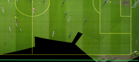 BAD Calibration is not accurate. In this case some part that lies outside the pitch is projected into the pitch. Do not try to cut off this bad projection. |