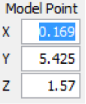 Model point editor. Shows real world coordinates of the point [in meters].