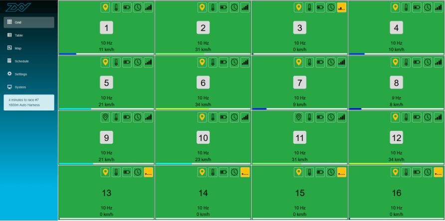 - Cells displaying a horse icon represent Transponders designated for the upcoming race.