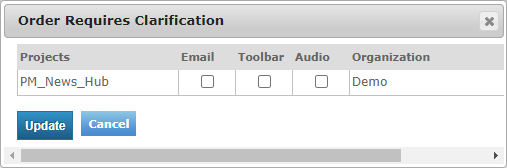 - The notification will be sent out only to users which are participating in that specific Order and are assigned workflow roles (i.e. submitter, designer, manager). This list is defined by the Order workflow configuration.