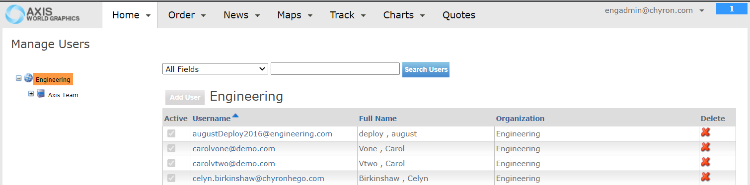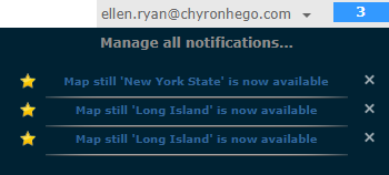 Users may like to be notified about an Axis event, e.g., when graphic rendering is complete. Notifications are customized for each service. In general, only the user which triggered the event (i.e. created a Map animation) will receive the notification. An exception is in the Order system where multiple users participating in the Order workflow will receive the same notifications.