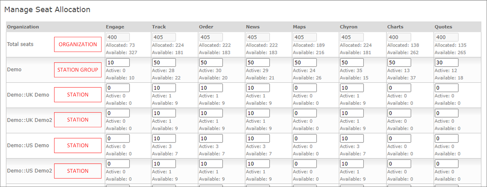 - Administration: Administration on the Organization (e.g., station group). Visible only to administrators.