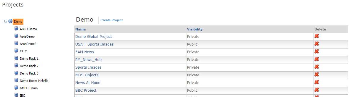 on the row that contains the project Name. The project is deleted from the list of projects. Note that if a Cannot Delete icon