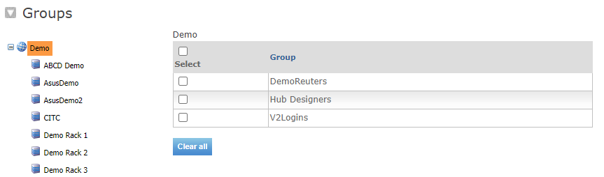 - Click the down arrow to the left of Groups. The Organization list is displayed.