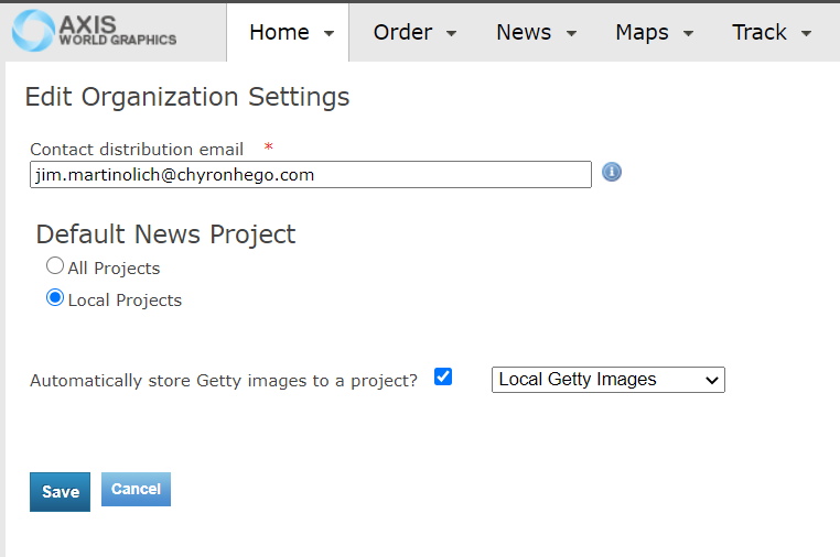 - In Home > Administration > Organization Settings, check the Automatically store Getty images to a project? checkbox.