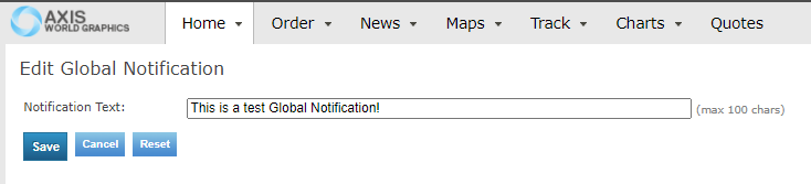 Administrators can post a Notification to the users in their organization by entering the text in the box as shown.