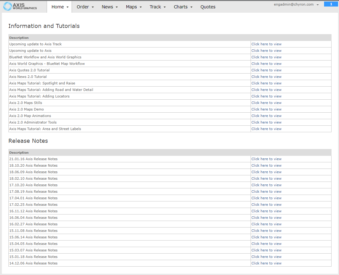 - Click the Home tab. The Information and Tutorials and Release Notes lists appear. These are links to YouTube video tutorials and posted release notes.