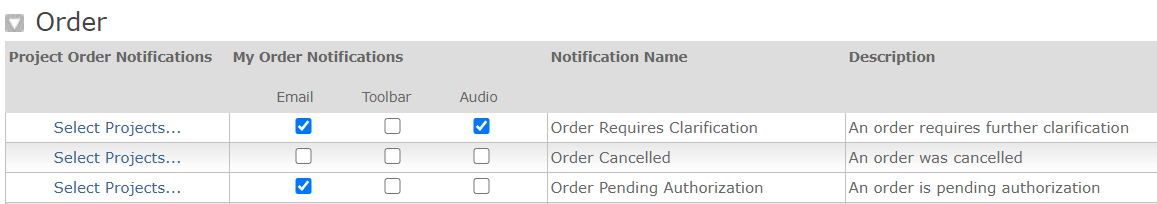The steps in your Order workflow depends on how it was configured for your organization. Typical notification items are as follows:
