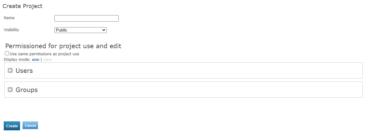 - View: This allows the list to be viewed, and for Users or Groups to be deleted Project.