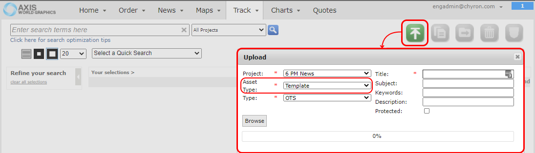 Axis News Templates are uploaded in Track as follows. Uploading does not require superuser or admin privileges, but user must have write access to the Project being uploaded to.