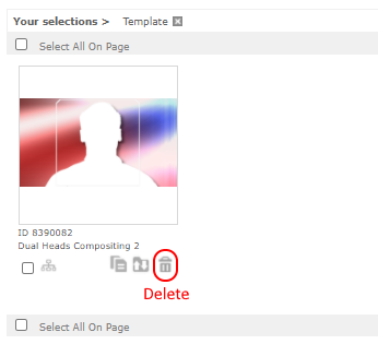 Searching for a template to delete can be made more easily by selecting the Asset Type = Template filter first. Click on the garbage can icon to delete the selected template.