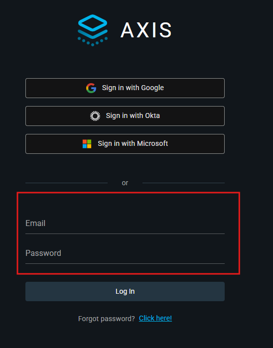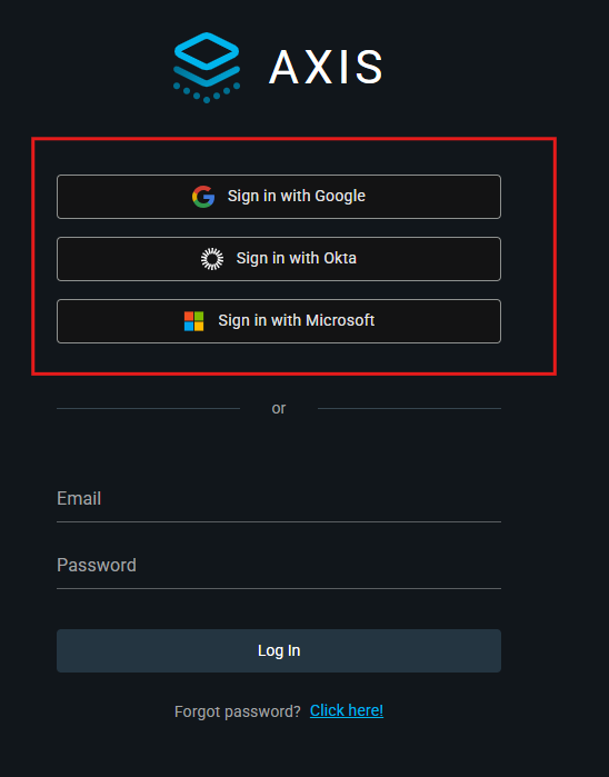 Axis supports two login methods post-integration: