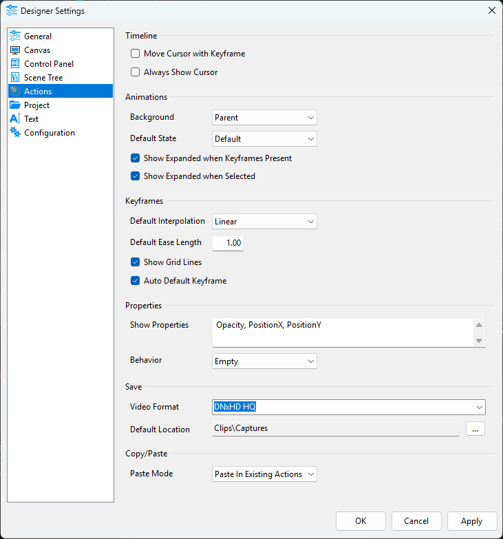 - Default Style: Select from the list of Styles (Refer to the “Text” section on Styles). This style will be the default style each time a new text object is added to your scene.