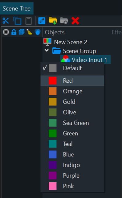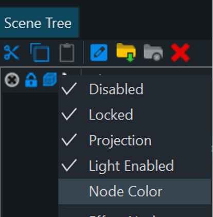 - To enable Node Coloring, right click on the toolbar left of the Scene Node where the “Lock” icon is located.