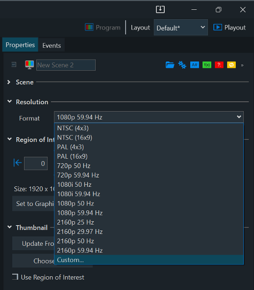 - Region of Interest: Set the Region of interest for the scene that can be used in designer to crop; save image and save clip files. (0,0,0,0 for Left, Top, Right and Bottom bounds is fullscreen resolution with no cropping applied).