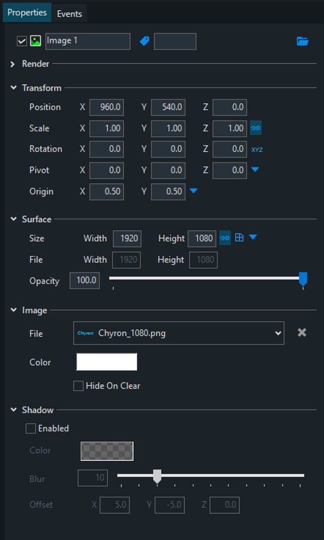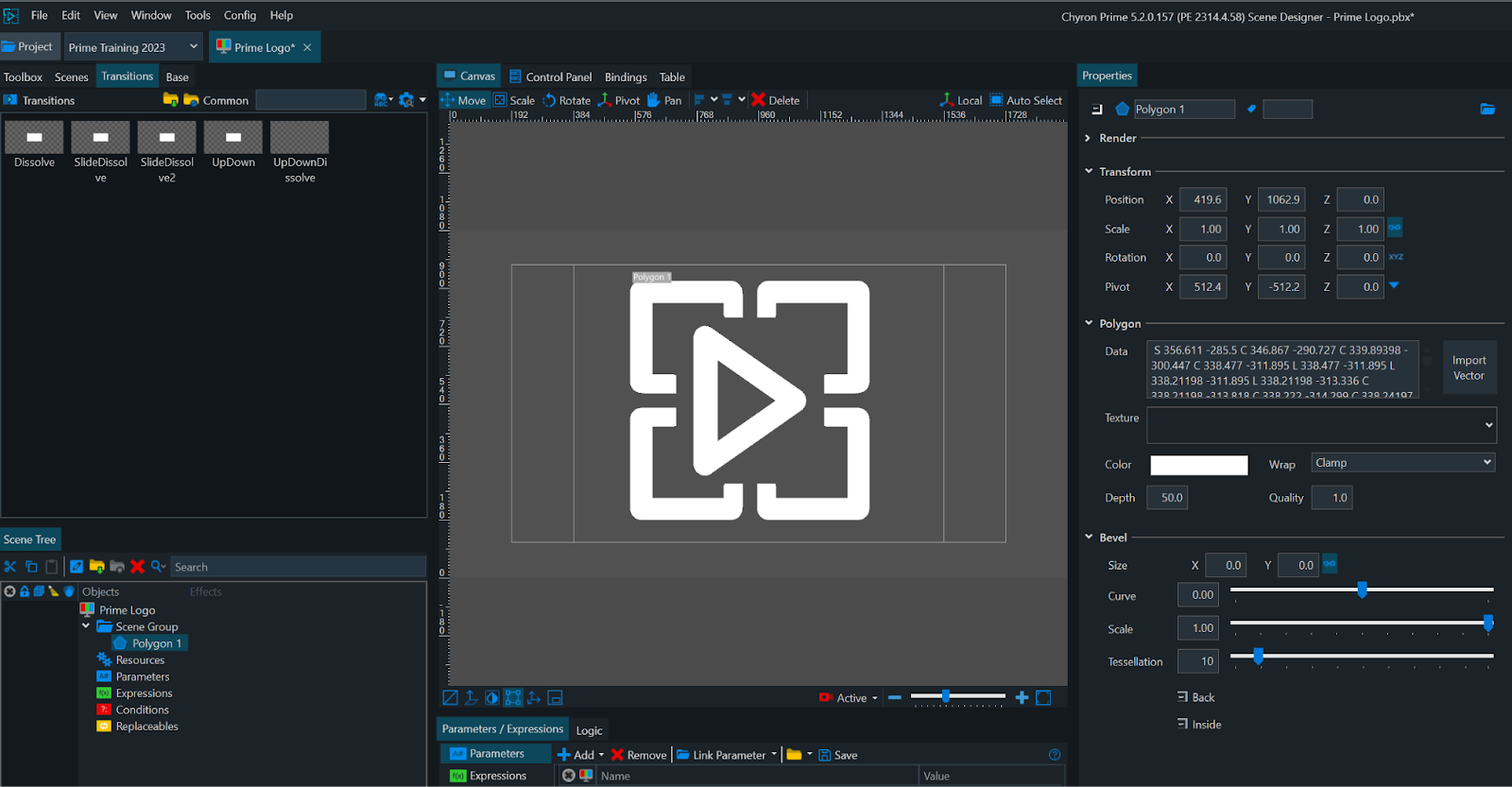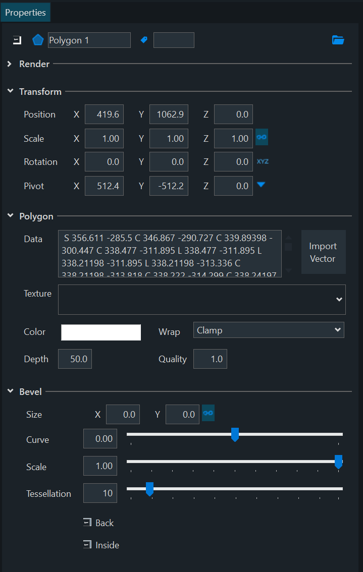 The Transform subcategory allows for the manipulation of the Clip Objects Position, Scale, Rotation and Pivot along the XYZ axis.