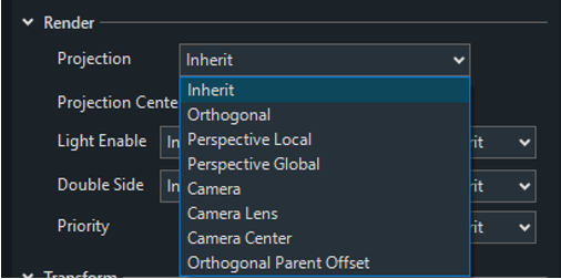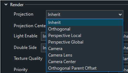 - Projection: Projection mode. It is method how to map 3D objects to 2D screen plane.