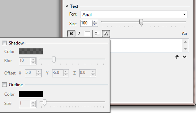 **Please Note - when Shadow and Outline are enabled at the same time on the same object, Designers should limit the Outline Size to no more than 10. Anything past 10 with Shadow turned on will greatly reduce system performance.