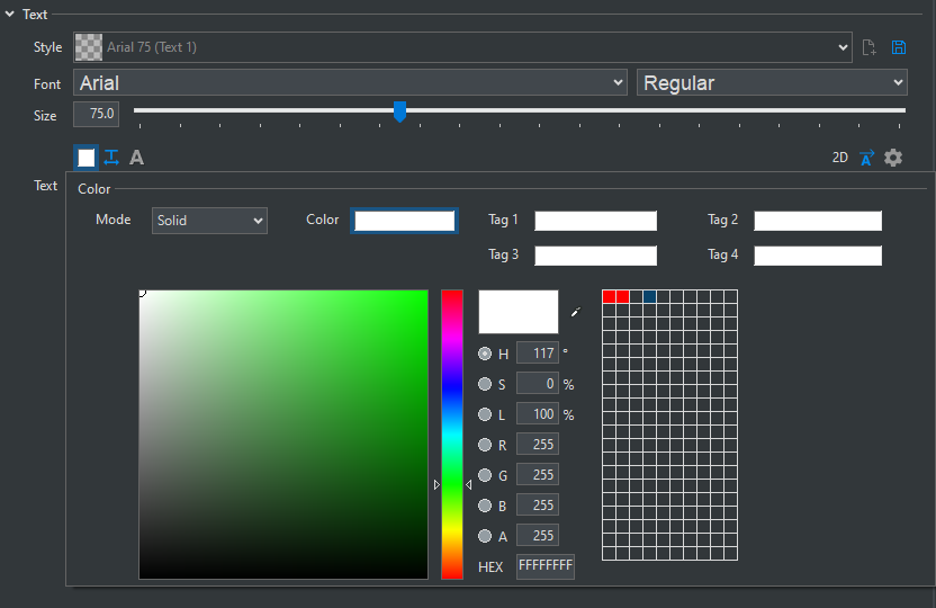 Text styles may be “referenced.” This means that changing the style of a text affects all other text objects in the scene or project.