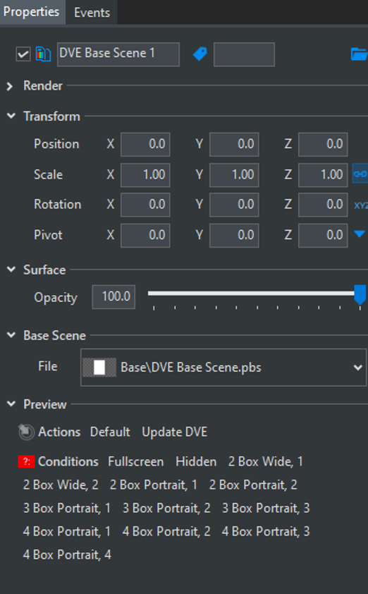 Base Scene Actions and Conditions become available in the Triggers list and through Conditions.