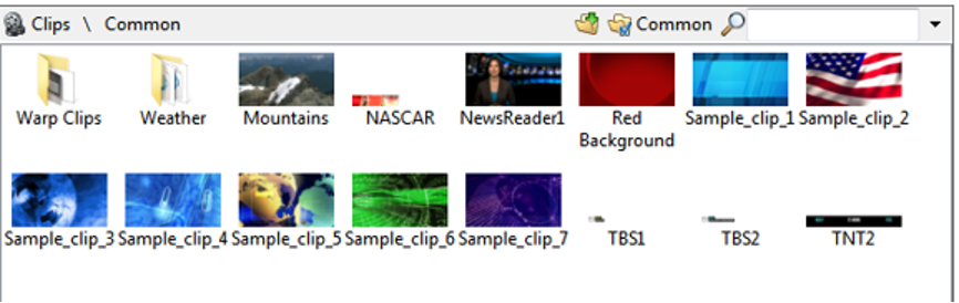 File: Shows the clip browser starting in the “Clips” folder of the current project