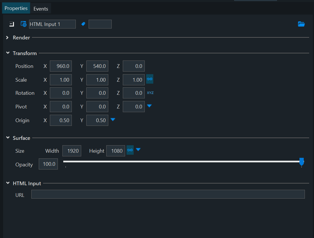 The Transform subcategory allows for the manipulation of the Video Input Objects Position, Scale, Rotation and Pivot along the XYZ axis.