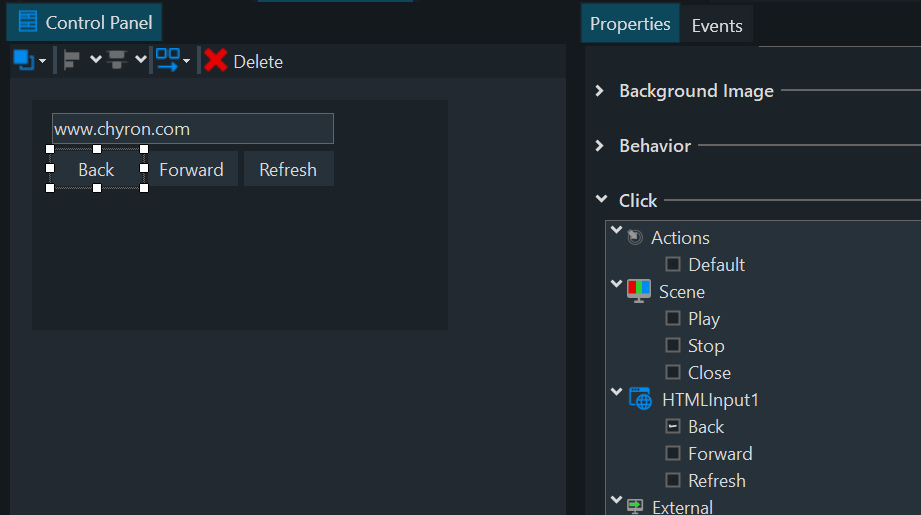 When Base scenes are added to scenes the Base Scene will be inserted into the current scene as a Scene child object. Control panel objects will be appended to the Control Panel.