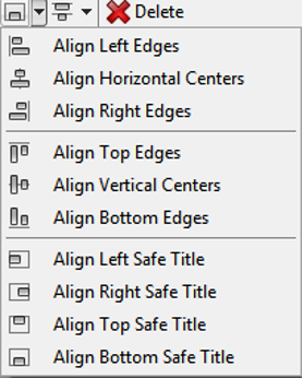 Chyron PRIME Guides User Guide (v5.3) 13: Alignment Tools Accessible by the toolbar.AlignAlign Edges – Aligns the bounding boxesAlign to Safe Title – Aligns the bounding boxes to safe titleDistributeEvenly distributes three or more selected items evenlySnap to Grid
