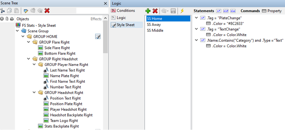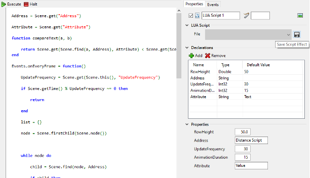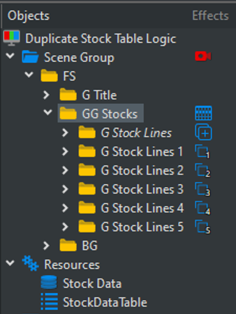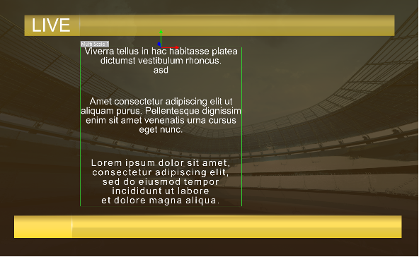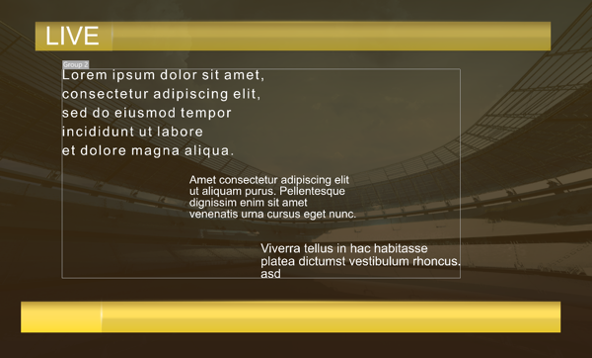 Example for using this effect: If you have a Full Screen graphic table, consisting of multiple rows and columns of data. The scene is constructed to animate each row individually. But the operator wants to change the amount of columns that display. Apply the virtual group effect to each text object, to create “virtual columns”. Then have each virtual column row autofollow the next. The virtual group will calculate the text field in the column that is the longest, making auto follow even easier. Essentially virtual groups will do math.max calculations, using the calculated property.