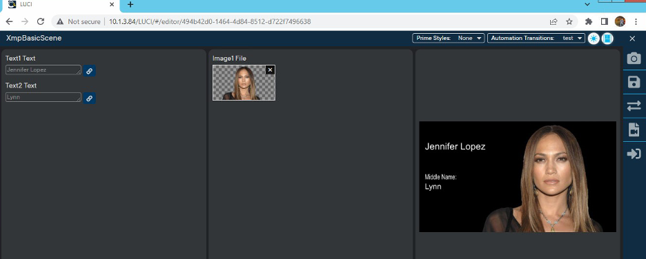 Any text, images or clip objects must be bound to a corresponding replaceable within Prime, to be visible and editable in the NRCS LUCI plug-in. In addition, for objects that are data bound to XMP, the replaceable must be flagged as databound.