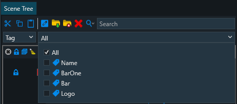 Click the left menu from Type to Tag to Search by Tag. This allows designers to see all Tags within a PRIME Scene and also filter or highlight objects with only the specified tag.