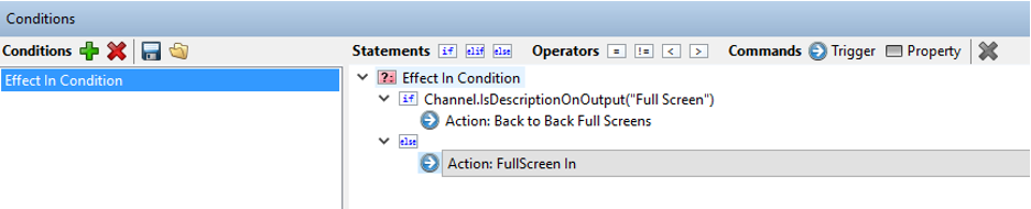 | Channel.IsDescriptionOnOutput(string description) | Returns true if there is another scene matching the given description on the current channel; the current channel is defined as whatever channel the scene executing the expression is on. This does not match the scene responsible for executing this function. The description can include wildcards like the External Action Trigger work from earlier this year. |